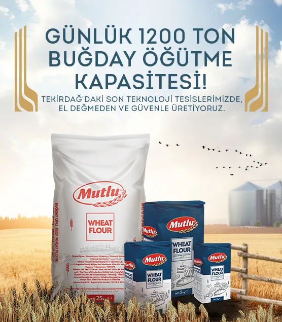 Türkiye’nin köklü firmalarından olan Mutlu Makarnacılık Sanayi ve Ticaret A.Ş. sektördeki 50 yılı aşan tecrübesiyle, yüksek kalite standartları, modern, yenilikçi ve tam otomasyonlu tesislerinde 2.500 ton/gün buğday işleme, 1.600 ton/gün makarna, 600 ton/gün un ve 40 ton/gün couscous üretim kapasiteleriyle dünyanın önde gelen gıda işletmelerinden biridir.